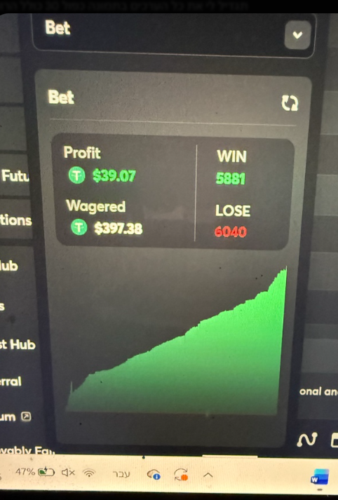 ystudio3d Posted 4 hours ago Share Posted 4 hours ago Hi everyone, I’m releasing a version of my personal Hash Dice script (OMEGA v7) as a gift to the community. This engine is the result of applying my 5 years of algorithmic trading experience to high-variance gaming environments. Important Disclaimer: Gambling involves significant risk. This script is based on my personal research and testing. It is not a guarantee of profit. Use it at your own risk and only with capital you can afford to lose. The Logic Behind OMEGA v7: Instead of a blind betting pattern, this script uses a State Machine to navigate through different phases of a session: GHOST Phase: Runs 0.0001 bets to analyze the seed and wait for a specific setup. HUNT Phase: Enters active betting once the setup is detected, using Bet Jitter to vary the bet size slightly for better account protection. The Vault (Trailing-Stop): Once a profit target is hit, the script activates a trailing stop-loss, "locking" gains and moving the exit floor upward as you win. Cooldown: Forced rest periods between sessions to maintain engine stability. Test Run Results (See Attached Screenshot): This screenshot demonstrates a stability run of nearly 12,000 autonomous rounds. You can see the engine successfully navigating drawdowns and recovering using the trailing logic. Total Rounds: 11,921 (Wins: 5881 / Losses: 6040) Wagered Volume: $397.38 Net Profit: $39.07 The Code: var config = { hunt_bet: { label: "Hunt Bet", value: 0.02, type: "number" }, hunt_pay: { label: "Hunt Payout", value: 10.00, type: "number" }, trail: { label: "Trail Amount", value: 0.30, type: "number" }, trail_act: { label: "Trail Activate", value: 0.50, type: "number" }, hard_sl: { label: "Hard Stop Loss", value: 1.00, type: "number" }, hunt_max: { label: "Max Hunt", value: 20, type: "number" }, cooldown: { label: "Cooldown Rounds",value: 50, type: "number" }, max_loss: { label: "Kill Switch $", value: 3.00, type: "number" }, ghost_min: { label: "Ghost Min", value: 5, type: "number" }, ghost_max: { label: "Ghost Max", value: 10, type: "number" }, hit_ghost_min:{label: "Hit Ghost Min", value: 2, type: "number" }, hit_ghost_max:{label: "Hit Ghost Max", value: 5, type: "number" }, bet_jitter: { label: "Bet Jitter %", value: 20, type: "number" }, initial_bal:{ label: "Balance", value: currency.amount, type: "number" } }; var total = 0, sess = 1, sW = 0, sL = 0, rd = 0; var sn = 0, pk = 0, g = 0, hN = 0, hits = 0; var trailOn = false; var mode = 'GHOST'; var coolLeft = 0; var ghostTarget = 8; function randGhost(isAfterHit) { var lo, hi; if (isAfterHit) { lo = config.hit_ghost_min.value; hi = config.hit_ghost_max.value; } else { lo = config.ghost_min.value; hi = config.ghost_max.value; } return Math.floor(Math.random() * (hi - lo + 1)) + lo; } function jitter(base) { var pct = config.bet_jitter.value / 100; var mult = 1 + (Math.random() * 2 - 1) * pct; var b = base * mult; return Math.round(Math.max(0.0001, b) * 10000) / 10000; } function startSession() { sn = 0; pk = 0; g = 0; hN = 0; hits = 0; trailOn = false; mode = 'GHOST'; ghostTarget = randGhost(false); log.info("S" + sess + " START | Ghost:" + ghostTarget + " | Total:" + total.toFixed(4) + " W:" + sW + " L:" + sL); } function startCooldown() { coolLeft = config.cooldown.value + Math.floor(Math.random() * 20); mode = 'COOL'; log.info("COOLDOWN " + coolLeft + " rounds..."); } function main() { ghostTarget = randGhost(false); log.info("OMEGA v7 AUTO | x" + config.hunt_pay.value + " trail:" + config.trail.value); game.onBet = function() { rd++; var B = config.hunt_bet.value; var T = config.hunt_pay.value; var TRAIL = config.trail.value; var TACT = config.trail_act.value; var SL = config.hard_sl.value; var HMAX = config.hunt_max.value; var KILL = config.max_loss.value; if (total <= -KILL) { log.error("KILL " + total.toFixed(4) + " S:" + sess + " W:" + sW + " L:" + sL); game.stop(); return; } /* === COOLDOWN === */ if (mode === 'COOL') { coolLeft--; if (coolLeft <= 0) { sess++; startSession(); } game.bet(0.0001, 1.0102).then(function(p) { var pf = p > 1 ? 0.0001 * 0.0102 : -0.0001; total += pf; }); return; } /* === CHECK TRAIL / SL === */ if (sn > pk) pk = sn; if (pk >= TACT) trailOn = true; if (trailOn && sn <= pk - TRAIL) { sW++; log.success("TRAIL S" + sess + " +" + sn.toFixed(4) + " pk:" + pk.toFixed(4) + " | Total:" + total.toFixed(4) + " W:" + sW); startCooldown(); game.bet(0.0001, 1.0102).then(function(p) { var pf = p > 1 ? 0.0001 * 0.0102 : -0.0001; total += pf; }); return; } if (sn <= -SL) { sL++; log.error("SL S" + sess + " " + sn.toFixed(4) + " | Total:" + total.toFixed(4) + " L:" + sL); startCooldown(); game.bet(0.0001, 1.0102).then(function(p) { var pf = p > 1 ? 0.0001 * 0.0102 : -0.0001; total += pf; }); return; } /* === GHOST PHASE === */ if (mode === 'GHOST') { g++; if (g >= ghostTarget) { mode = 'HUNT'; hN = 0; } game.bet(0.0001, 1.0102).then(function(p) { var pf = p > 1 ? 0.0001 * 0.0102 : -0.0001; sn += pf; total += pf; }); return; } /* === HUNT PHASE === */ var b = B; if (hN >= 5 && hN < 10) b = B * 2; if (hN >= 10) b = B * 4; b = jitter(b); var t = T; /* Payout jitter: randomly nudge target ±0.5 */ var payJitter = (Math.random() - 0.5) * 1.0; t = Math.max(2.00, T + payJitter); t = parseFloat(t.toFixed(2)); log.info("S" + sess + " H" + (hN+1) + " B:" + b.toFixed(4) + " x" + t + (trailOn ? " T@" + (pk-TRAIL).toFixed(3) : "")); if (rd % 50 === 0) { var real = currency.amount - config.initial_bal.value; log.info("R:" + rd + " S" + sess + " sn:" + sn.toFixed(4) + " total:" + total.toFixed(4) + " real:" + real.toFixed(4) + " W:" + sW + " L:" + sL); } game.bet(b, t).then(function(payout) { var won = payout > 1; var pf = won ? (b * t) - b : -b; sn += pf; total += pf; if (won) { hits++; log.success("HIT +" + pf.toFixed(4) + " sn:" + sn.toFixed(4) + " total:" + total.toFixed(4)); /* >>> GHOST BETWEEN HITS <<< */ mode = 'GHOST'; g = 0; hN = 0; ghostTarget = randGhost(true); } else { hN++; if (hN >= HMAX) { mode = 'GHOST'; 